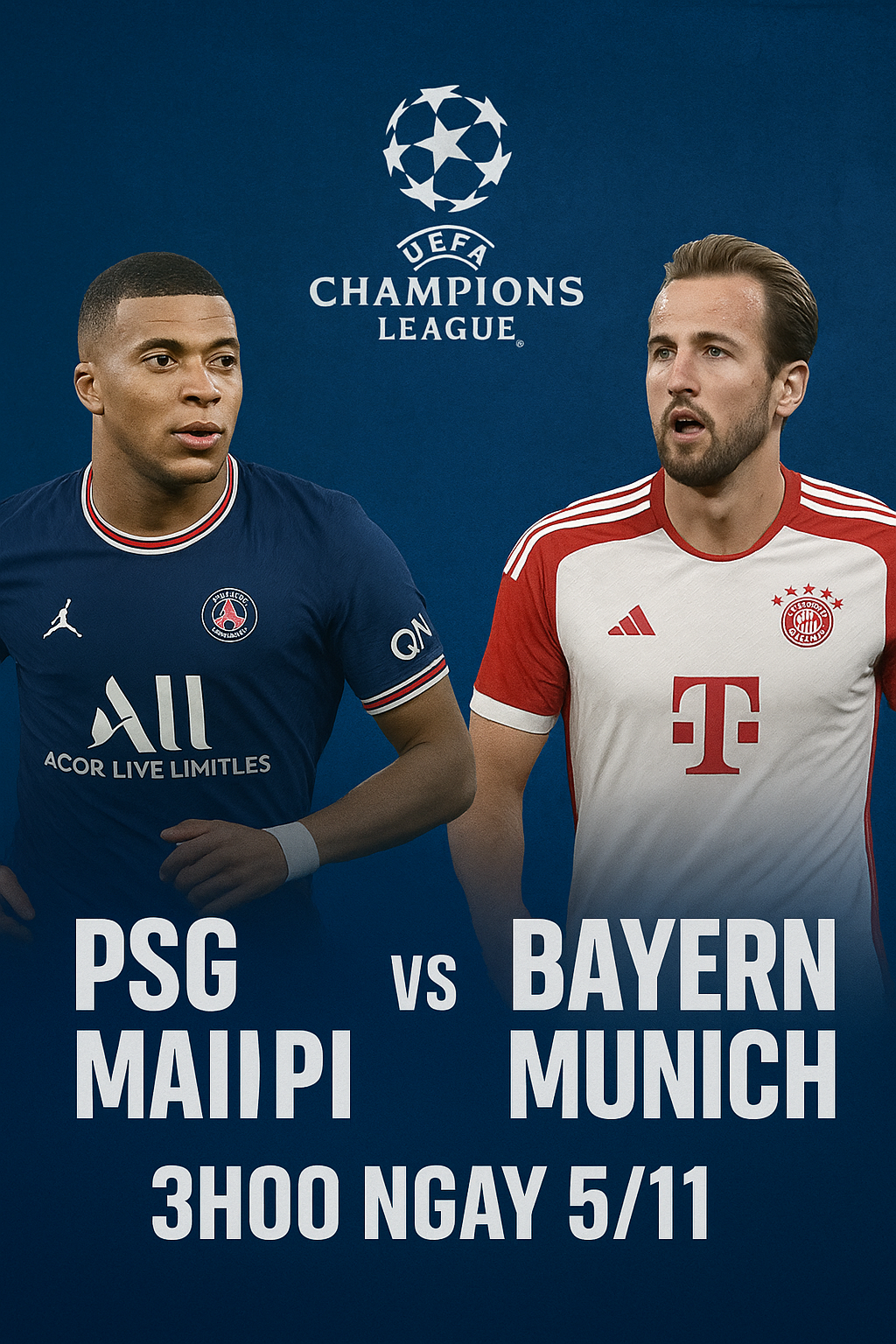 Trận PSG vs Bayern Munich lúc 3h00 ngày 5/11 sẽ là bữa tiệc bóng đá đỉnh cao, nơi những ngôi sao tấn công hàng đầu châu Âu như Mbappé, Kane, Sané, Musiala cùng nhau tỏa sáng. Đây không chỉ là cuộc đấu giành ngôi đầu bảng mà còn là màn trình diễn chiến thuật hấp dẫn giữa hai đội bóng được đánh giá cao nhất châu Âu hiện nay.